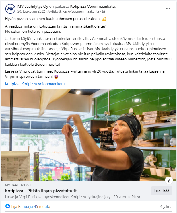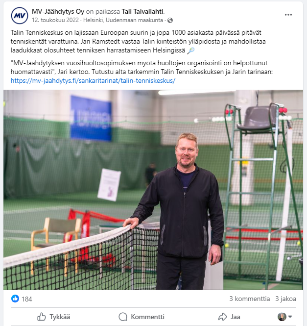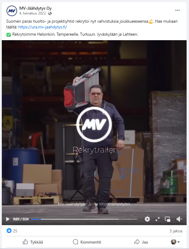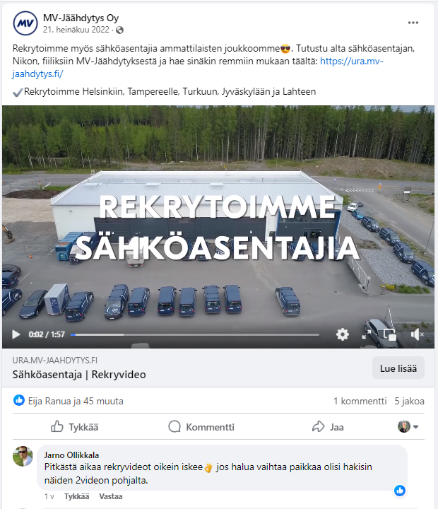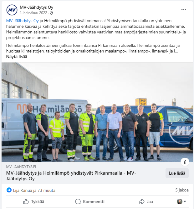 Produced customer stories for MV-Jäähdytys as both an employee and freelancer, managing the process from content creation to social media publishing and paid promotion.